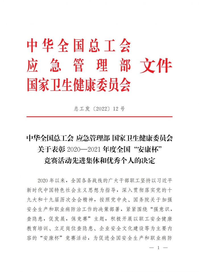 11月2日,全國(guó)“安康杯”競(jìng)賽組委會(huì)在北京召開2020-2021年度全國(guó)“安康杯”競(jìng)賽活動(dòng)表彰暨經(jīng)驗(yàn)交流會(huì)。表彰2020—2021年度全國(guó)“安康杯”競(jìng)賽先進(jìn)集體和優(yōu)秀個(gè)人,集團(tuán)延安南泥灣勞模工匠學(xué)院項(xiàng)目榮獲“優(yōu)勝班組”榮譽(yù)稱號(hào)。
