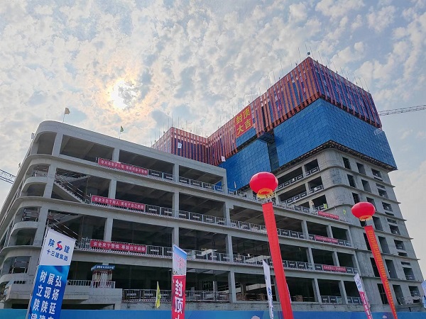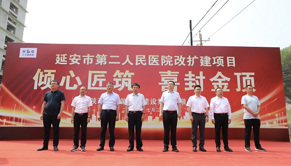 傾心匠筑·喜封金頂。7月20日,由陜建十三建集團(tuán)承建的延安市第二人民醫(yī)院改擴(kuò)建項目順利封頂。