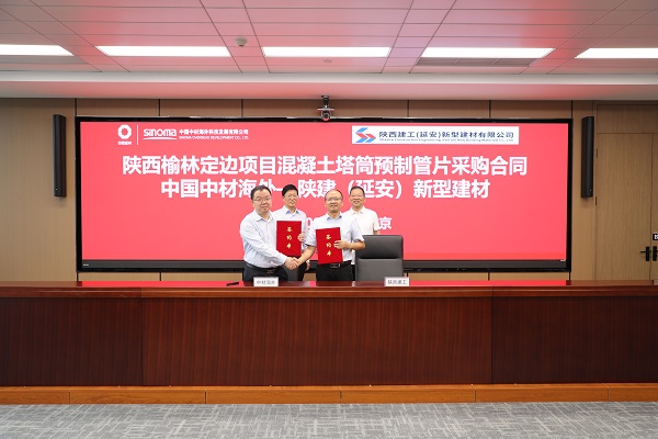 會上,中國中材海外科技發(fā)展有限公司黨委副書記、總經理祝林和,集團總工程師、新型建材公司董事長王弘起代表雙方簽訂了陜西榆林定邊項目混凝土塔筒預制管片采購合同。