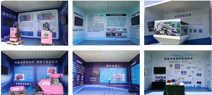 該項目緊扣智能化、數(shù)字化主題,以“設計數(shù)字化、施工智能化、管理信息化”為主線,分為“數(shù)字平臺區(qū)、智能機器人區(qū)、智能設備區(qū)、四新技術(shù)應用區(qū)、展板區(qū)”五大展區(qū),分別呈現(xiàn)了質(zhì)量巡檢系統(tǒng)、BIM技術(shù)過程管理、基坑監(jiān)測系統(tǒng)、地面整平機器人、地庫抹光機器人、螺桿洞封堵機器人、混凝土內(nèi)墻面打磨機器人、建筑清掃機器人、地坪研磨機器人、ALC墻板安裝機器人等,展示了一系列施工相關的智能建造技術(shù)和智能設備,讓觀摩人員贊嘆不已、紛紛點贊。