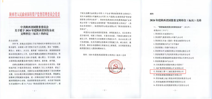 近日,中共陜西省國資委委員會(huì)印發(fā)關(guān)于授予2024年度陜西省國有企業(yè)文明單位(標(biāo)兵)的決定,集團(tuán)獲評(píng)“陜西省國資委文明單位標(biāo)兵”。